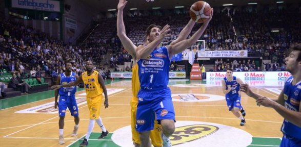 La De’Longhi non smette di crederci: spinti dal proprio pubblico, Brown recupera un pallone a metà campo e appoggia a canestro mentre Musso piazza il suo quattordicesimo puntodella serata facendo esplodere il Palaverde per il -4 a due minuti dalla fine. Il finale è forse troppo ingeneroso per i ragazzi di Pillastrini: la tripla del definitivo aggancio di Musso viene respinta dal ferro e nel ribaltamento di fronte Campogrande è letale dall’angolo realizzando la sua terza tripla che chiude definitivamente l’incontro.