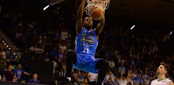 TREVISO - Inizia bene la De Longhi anche i quarti di finale: Ferrara sepolta da 20 punti anche se tutto sommato non è stato facilissimo per Treviso piegare la resistenza degli ospiti. Inizio scoppiettante per entrambe le squadre, con costruzioni offensive efficaci. Ferrara preferisce le giocate sotto canestro trovando in Fantoni (75% da due) e Rush (7pt) punti importanti per rimanere a contatto ad una Treviso che, con la tripla di Antonutti e la schiacciata di Brown (8pt) dopo un recupero difensivo sempre dell’ala friulana, si trova a condurre sul 21-13 quando mancano 3 minuti al termine del primo quarto. Cortese si sblocca da oltre l’arco ma Swann e Imbrò, con due penetrazioni, chiudono il quarto in favore di TVB per 25-18. Treviso nel secondo quarto mantiene alte le proprie percentuali al tiro, il parziale di 7-0 firmato Swann e Antonutti (15 punti, 4/5 da due, 2/3 da tre) porta avanti TVB di 15pt (36-21). Eric Lombardi mostra il suo atletismo in area con rimbalzi e correzioni a canestro che aumentano il divario: 42-27 a metà quarto. Prima dell’intervallo lungo Antonutti realizza subendo fallo e Mike Hall (eletto miglior giocatore straniero del campionato) mostra il suo talento con 5 punti da campione assoluto che permettono alla Bondi di portarsi sul -11 (51-40). Al rientro in campo la trama della partita continua sulla falsa riga del primo tempo, con la De’Longhi che conduce sul +10 grazie all’appoggio a canestro di Brown (59-46). Il fallo antisportivo di Antonutti scalda gli animi del Palaverde, che esploderà poco dopo con le due triple consecutive di Musso (3/4 da tre). Il vero protagonista del terzo quarto, però, è un devastante Eric Lombardi (6/6 da due) che prima cancella con due stoppate Moreno e Cortese, poi schiaccia realizzando un canestro incredibile sulla sirena, per il 74-57 con cui le squadre chiudono il terzo periodo. L’ultimo quarto è tutto in discesa per Treviso, che continua a controllare il match con un’ottima difesa e spettacolari giocate in attacco. La profondità della panchina della De’ Longhi, rispetto a quella della Bondi, si fa sentire e infatti Ferrara inizia ad accusare stanchezza e mancanza di lucidità in più di un’occasione. Negli ultimi minuti i due coach fanno entrare i giovani, e per TVB è proprio Lorenzo De Zardo a chiudere il match prima con una tripla e poi con una grande schiacciata dopo aver rubato palla a centrocampo.DE’ LONGHI TREVISO – BONDI FERRARA 94-74